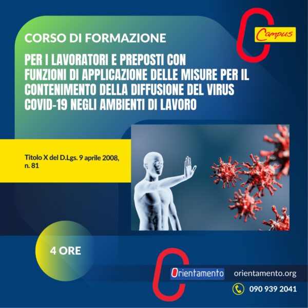 • Corso di formazione per i Preposti con funzioni di applicazione delle misure per il contenimento della diffusione del virus COVID-19 negli ambienti di lavoro.